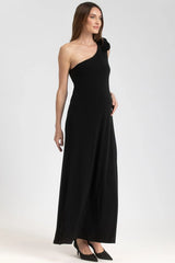 EVA | Black One-Shoulder Maternity Dress with Detachable Flowers